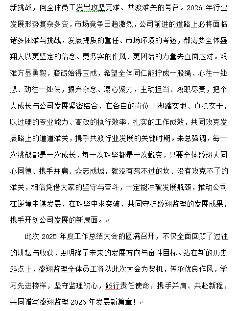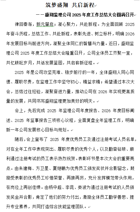 筑夢盛翔 共啟新程 ——盛翔監(jiān)理公司2025年度工作總結(jié)大會圓滿召開