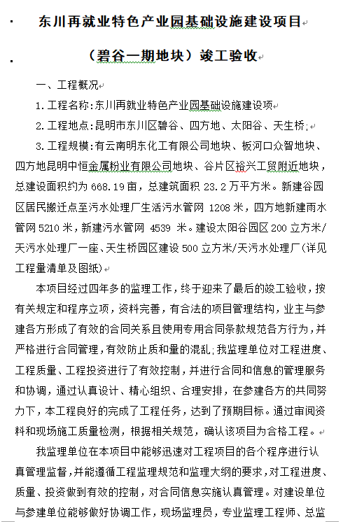 東川再就業(yè)特色產(chǎn)業(yè)園基礎(chǔ)設(shè)施建設(shè)項(xiàng)目 (碧谷一期地塊)竣工驗(yàn)收