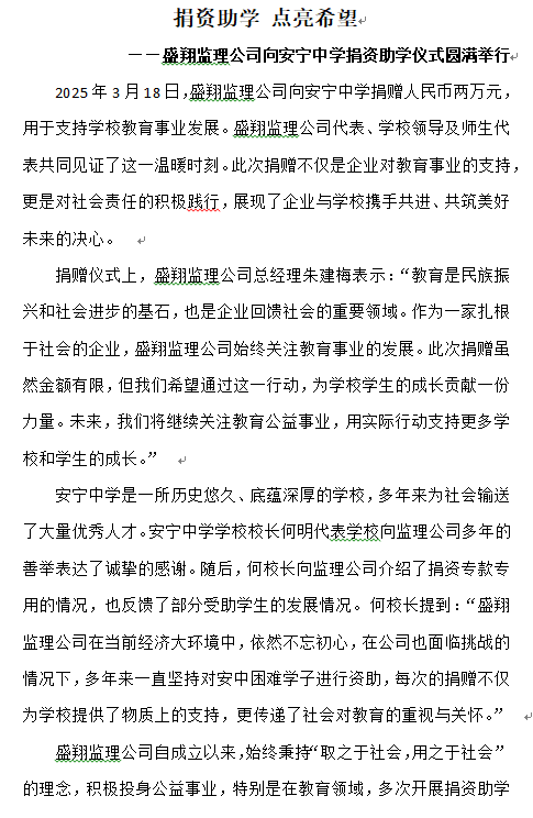 捐資助學(xué) 點(diǎn)亮希望 ——盛翔監(jiān)理公司向安寧中學(xué)捐資助學(xué)儀式圓滿舉行