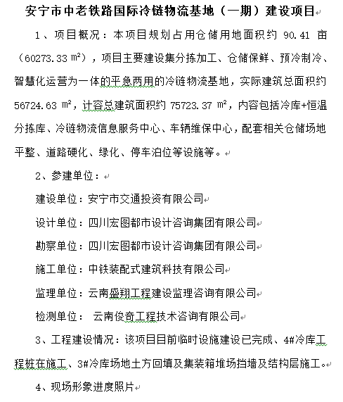 安寧市中老鐵路國際冷鏈物流基地(一期)建設項目