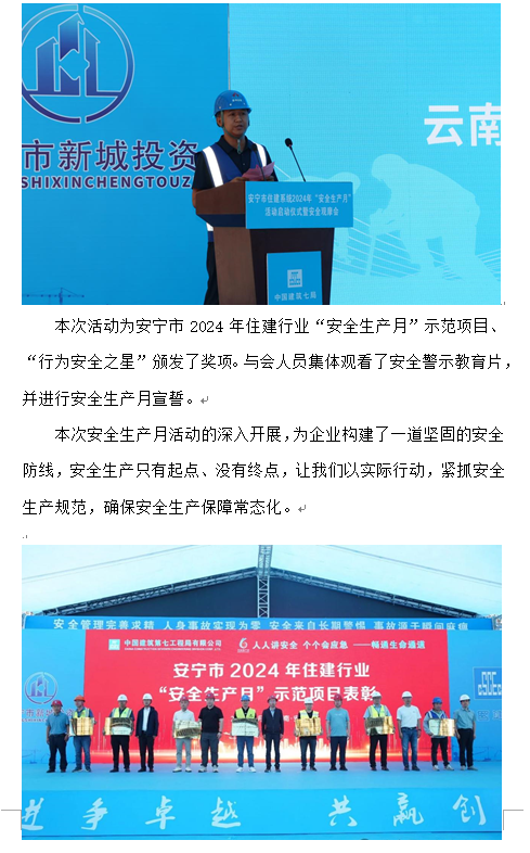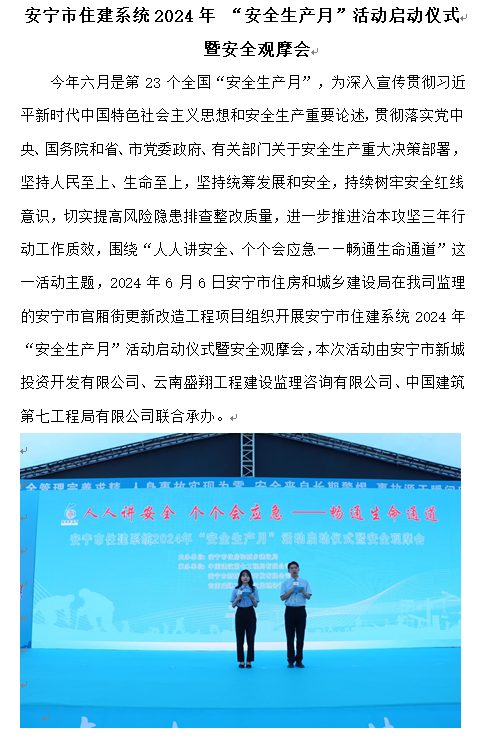安寧市住建系統(tǒng)2024年 “安全生產(chǎn)月”活動啟動儀式暨安全觀摩會