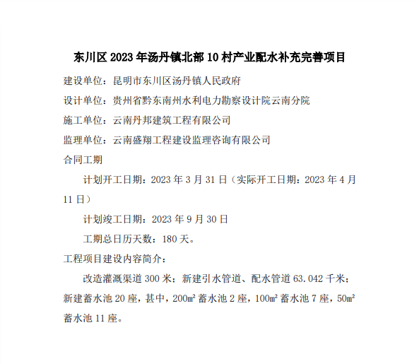 東川區(qū)2023年湯丹鎮(zhèn)北部10村產(chǎn)業(yè)配水補(bǔ)充完善項(xiàng)目