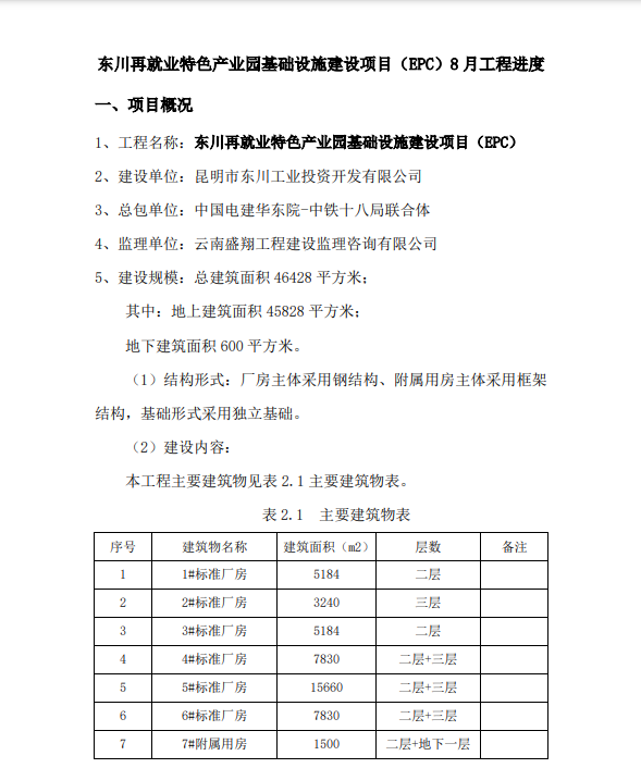 • 東川再就業(yè)特色產(chǎn)業(yè)園基礎設施建設項目(EPC)8月工程進度