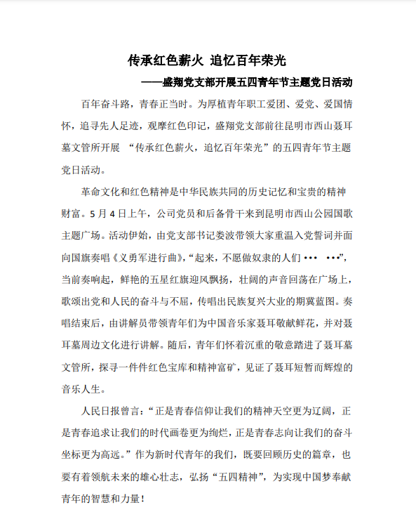 傳承紅色薪火 追憶百年榮光 ——盛翔黨支部開展五四青年節(jié)主題黨日活動(dòng)
