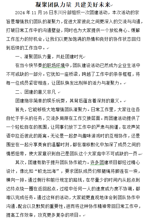 凝聚團(tuán)隊(duì)力量 共建美好未來——東川分部團(tuán)建活動(dòng)