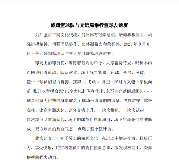 盛翔籃球隊(duì)與交運(yùn)局舉行籃球友誼賽