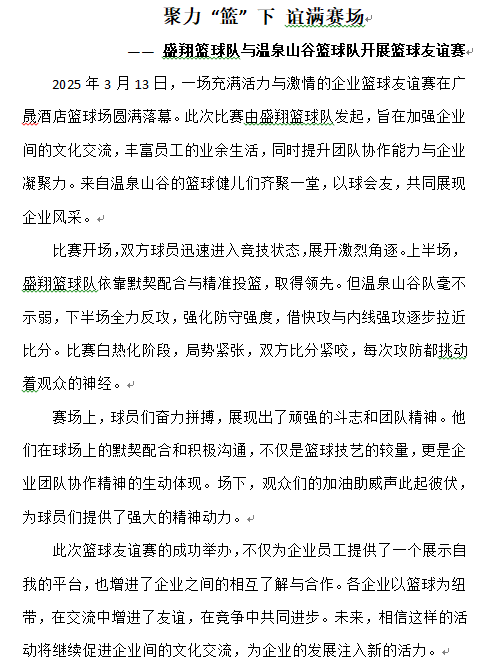 聚力 “籃” 下 誼滿賽場 —— 盛翔籃球隊與溫泉山谷籃球隊開展籃球友誼賽