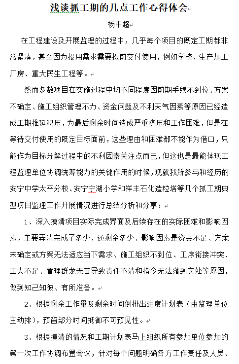 淺談抓工期的幾點(diǎn)工作心得體會(huì)——楊中超