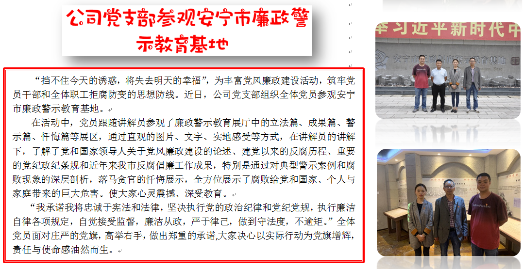 公司黨支部參觀安寧廉政教育基地