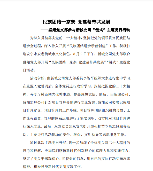民族團結(jié)一家親 黨建幫帶共發(fā)展 ——盛翔黨支部參與新城公司“鏈?zhǔn)健敝黝}黨日活動