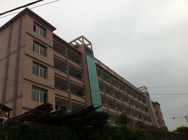 二、本工程為金平中學教學樓綜合工程,共5層,為框架結構,基礎為人工挖孔灌注樁,總建筑面積為:3584.36㎡,建筑物總長為77.83m,總寬為10.6m,總高為18.3m,層高為3.6m,抗震設防烈度七度,耐火等級二級。屋面防水等級三級。開工日期:2013年10月12日,竣工日期: 2014年12月20日。