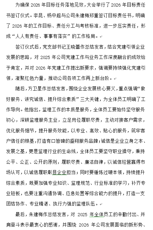 筑夢盛翔 共啟新程 ——盛翔監(jiān)理公司2025年度工作總結(jié)大會圓滿召開