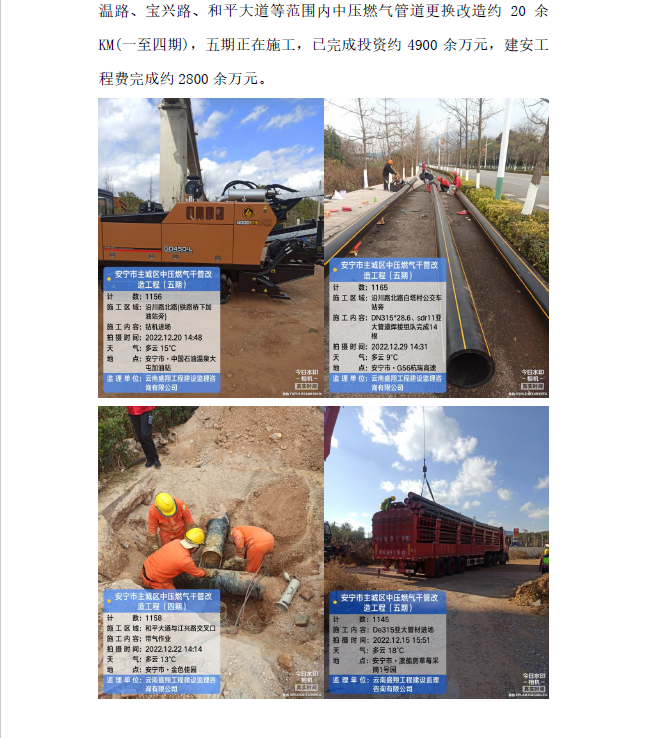 安寧市主城區(qū)中壓燃氣主干管改造工程概況