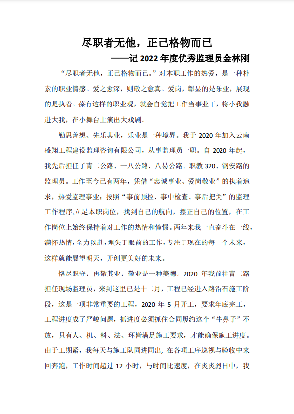 盡職者無(wú)他,正己格物而已 ——記2022年度優(yōu)秀監(jiān)理員金林剛