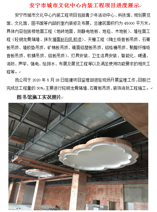 安寧市城市文化中心內(nèi)裝工程項目進度展示