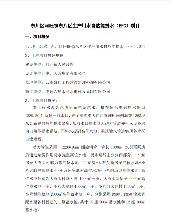 東川區(qū)阿旺鎮(zhèn)東片區(qū)生產(chǎn)用水自然能提水(EPC)項(xiàng)目