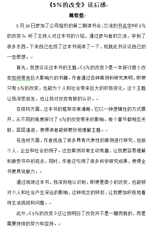 《5%的改變》讀后感——戴惜憬
