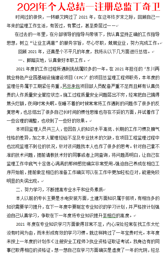 注冊總監(jiān)丁奇衛(wèi)2021年個(gè)人總結(jié)