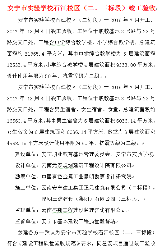 • 安寧市實(shí)驗(yàn)學(xué)校石江校區(qū)(二、三標(biāo)段)竣工驗(yàn)收