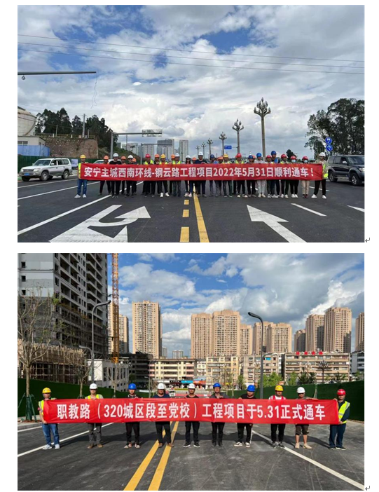 • 由我公司監(jiān)理的安寧鋼云路、職教路(320城區(qū)段至黨校) 5月31日順利建成通車