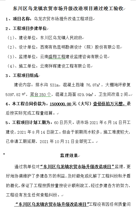 東川區(qū)烏龍鎮(zhèn)農(nóng)貿(mào)市場(chǎng)升級(jí)改造項(xiàng)目通過(guò)竣工驗(yàn)收