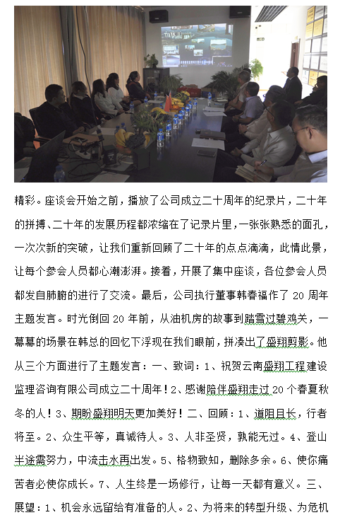 熱烈慶祝云南盛翔工程建設監(jiān)理咨詢有限公司成立20周年