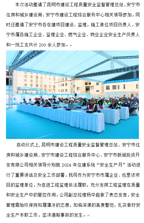 安寧市住建系統(tǒng)2024年 “安全生產(chǎn)月”活動啟動儀式暨安全觀摩會