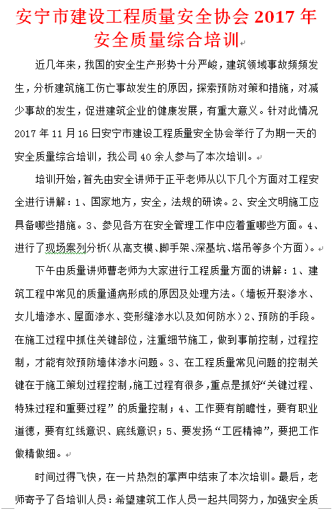 安寧市建設(shè)工程質(zhì)量安全協(xié)會(huì)2017年安全質(zhì)量綜合培訓(xùn)