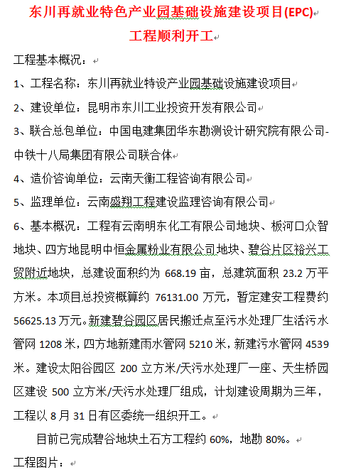東川再就業(yè)特色產(chǎn)業(yè)園基礎(chǔ)設(shè)施建設(shè)項目(EPC) 工程順利開工