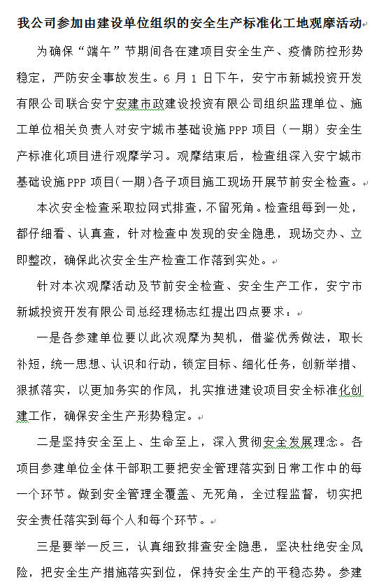 我公司參加由建設(shè)單位組織的安全生產(chǎn)標(biāo)準(zhǔn)化工地觀摩活動(dòng)