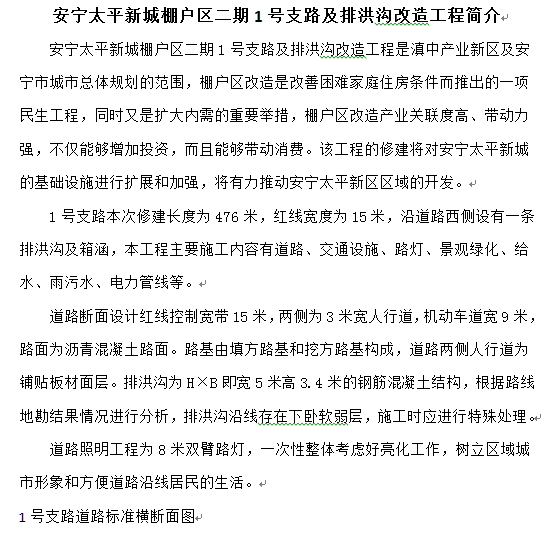 安寧太平新城棚戶區(qū)二期1號(hào)支路及排洪溝改造工程
