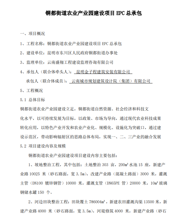 銅都街道農(nóng)業(yè)產(chǎn)業(yè)園建設項目EPC總承包