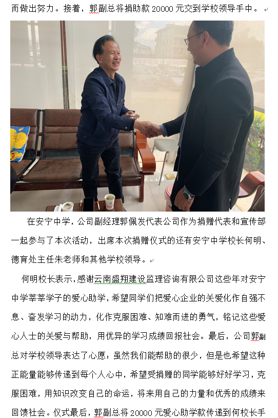 公司對安寧中學、祿脿中學進行2019年度愛心助學捐贈