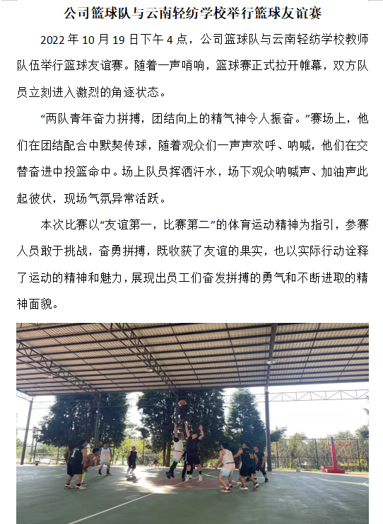 公司籃球隊與云南輕紡學(xué)校舉行籃球友誼賽