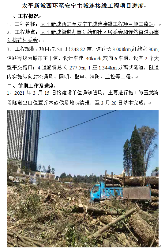 太平新城西環(huán)至安寧主城連接線工程項目進度
