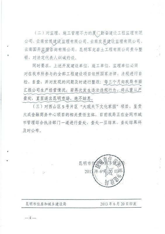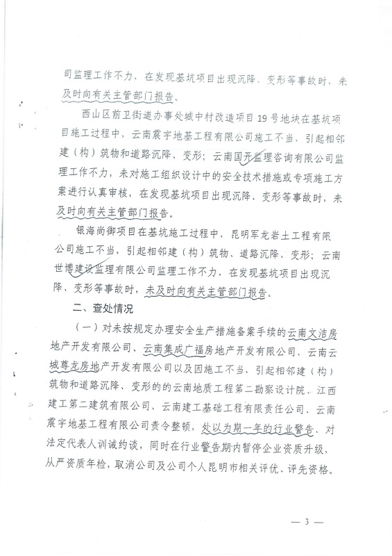 西山區(qū)5號片區(qū)“大觀天下文化家園”等七個項目基坑違法施工問題查處情況通報