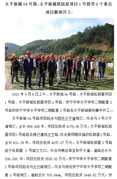 太平新城34號路、太平新城松鼠屋項(xiàng)目1號路等5個重點(diǎn)項(xiàng)目順利開工