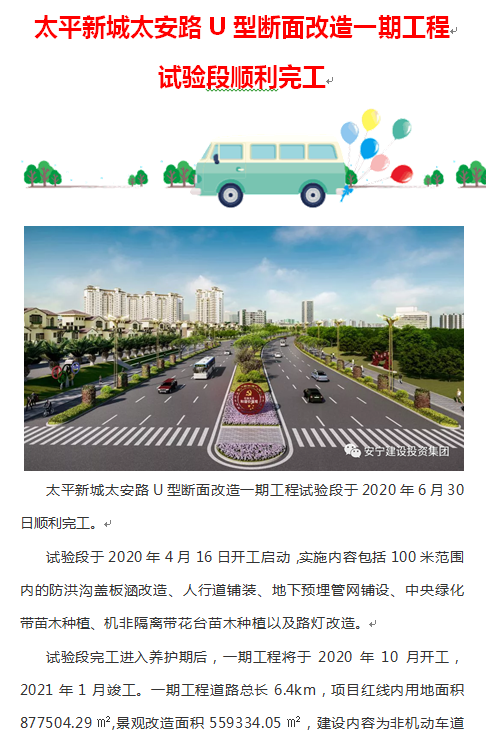 太平新城太安路U型斷面改造一期工程 試驗段順利完工