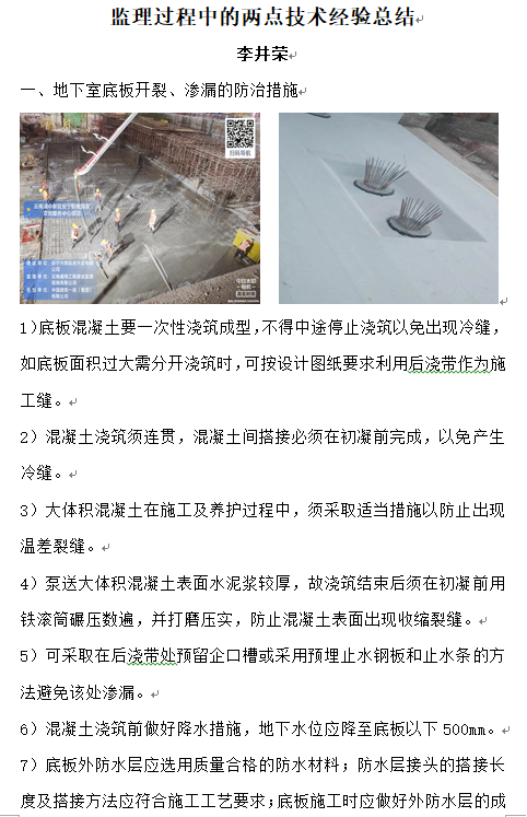 監(jiān)理過程中的兩點(diǎn)技術(shù)經(jīng)驗(yàn)總結(jié)——李井榮