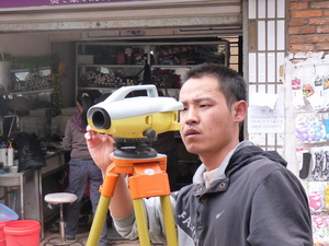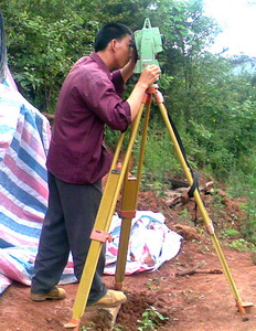 測繪人員的儀器已經(jīng)擺在了山頭上。