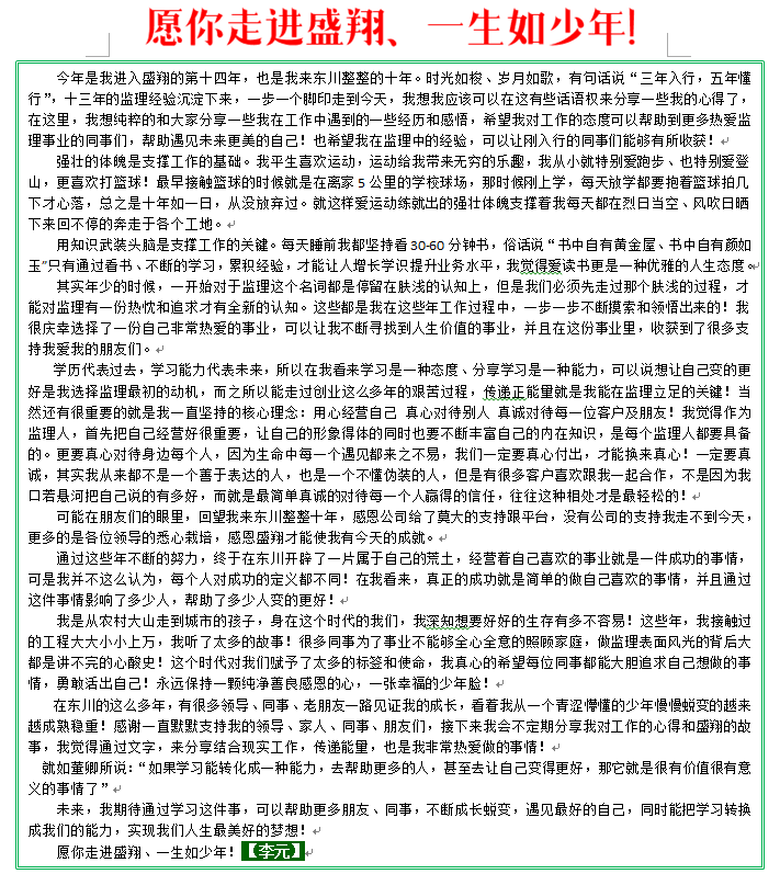 愿你走進(jìn)盛翔,一生如少年