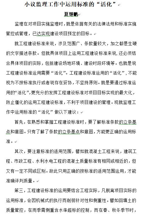 小議監(jiān)理工作中運(yùn)用標(biāo)準(zhǔn)的“活化”