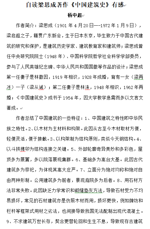 自讀梁思成著作《中國(guó)建筑史》有感 楊中超
